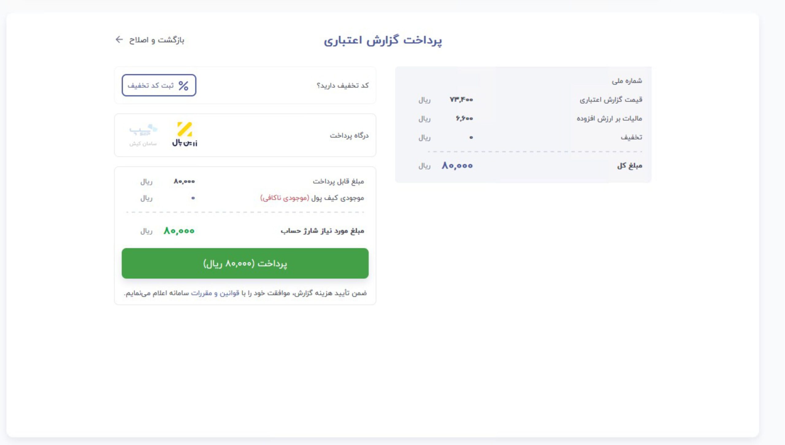 چنانچه وضعیت اعتبارسنجی حقوقی را نیز در نظر دارید بررسی کنید، شناسه ملی شرکت و یا سازمان خود را وارد نمایید.