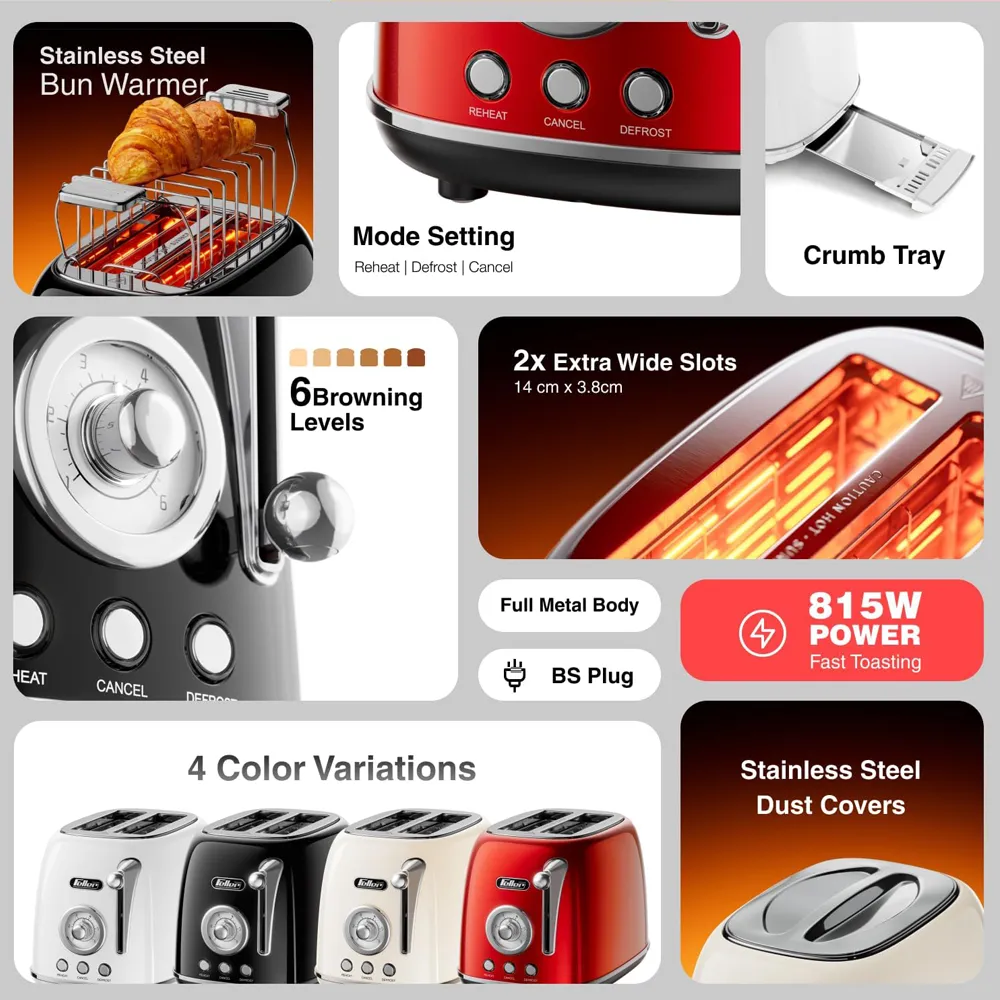 دارای قابلیت تنظیم حرارت ,دکمه توقف عملیات ,قابلیت یخ زدایی ,کشوی جمع آوری خرده نان |