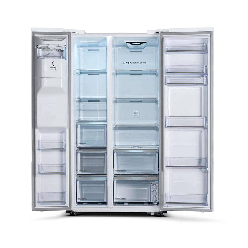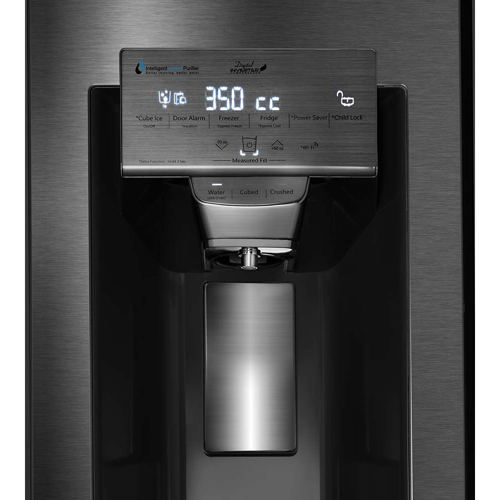 آبسردکن هوشمند با قابلیت آبگیری با حجم دلخواه ,دارای هوم بار با درب فلزی ,دستگیره مخفی بلند ,قابلیت تولید یخ مکعبی و یخ خرد شده ,مجهز به دئودورایزر جهت باکتری زدایی محیط یخچال و فریزر ,مجهز به دریچه کنترل رطوبت برای جا میوه ای یخچال ,مجهز به فیلتر سه گانه آب، تعویض آسان فیلترها از جلو ,نمایشگر روی درب |