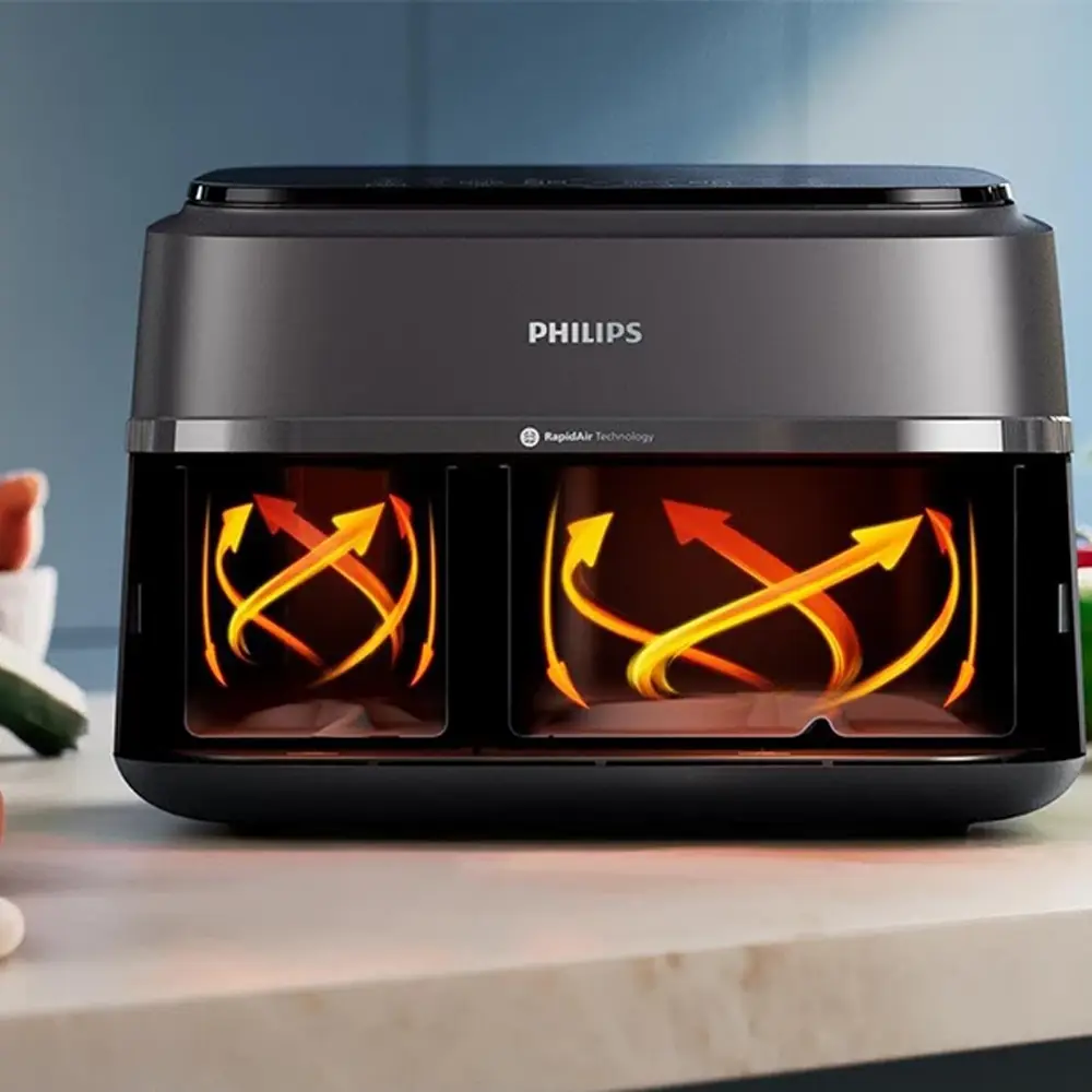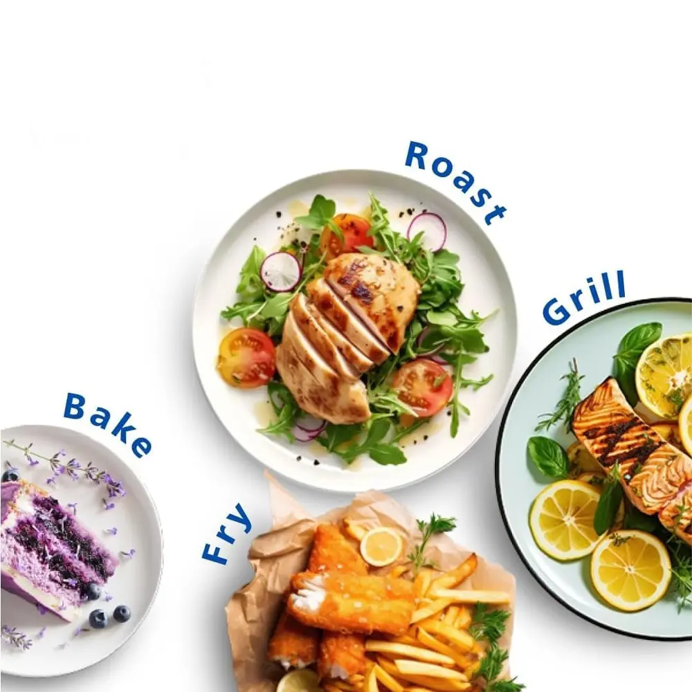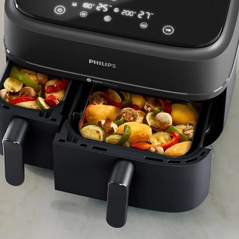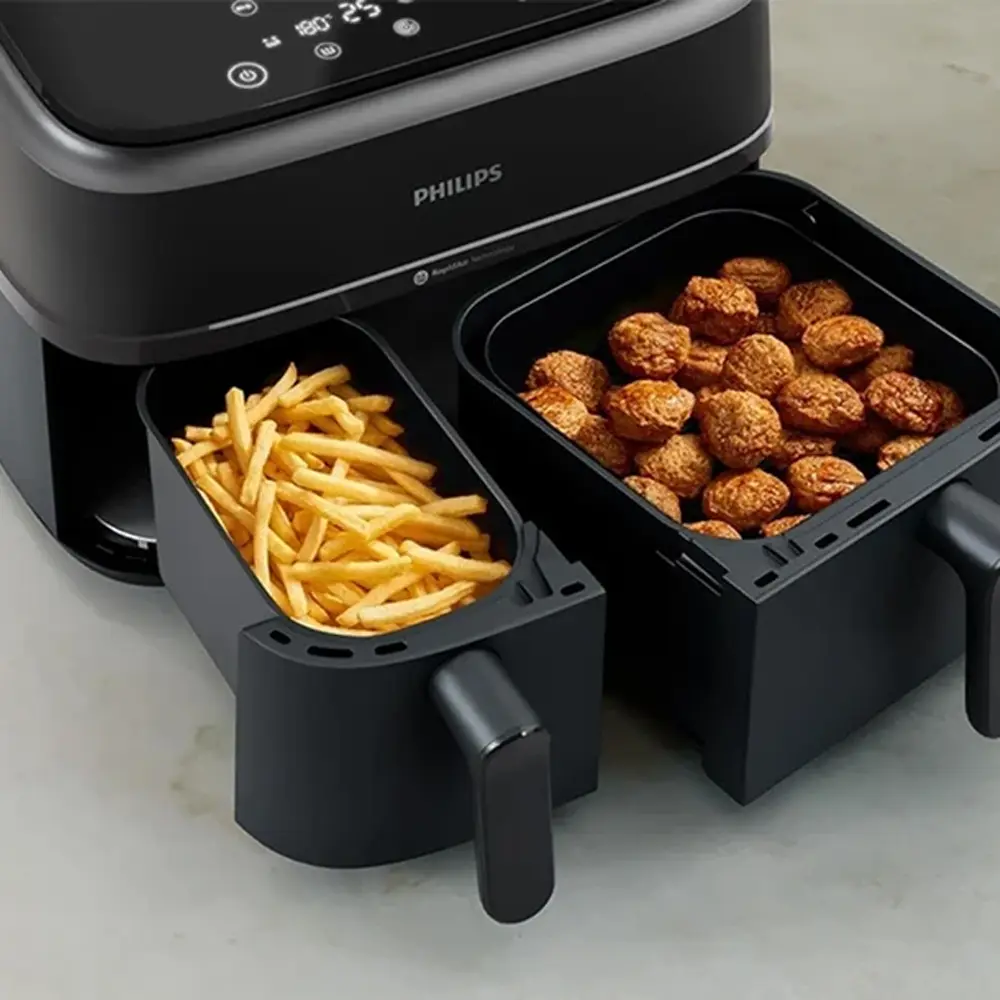 13 عملکرد پخت و پز ,۲ کشو با دمای از پیش تعیین شده برای سیب زمینی سرخ شده تازه، سیب زمینی سرخ شده یخ زده، مرغ، گوشت، سبزیجات، ماهی، کیک و گرم کردن مجدد ,پشتیبانی از برنامه HomeID برای دستور پختهای متنوع ,تکنولوژی تهویه هوا سریع ,چرخش هوای گرم ,دارای یک سبد با ظرفیت ۶ لیتر و یک سبد با ظرفیت ۳ لیتر ,صفحه نمایشگر دیجیتال ,قابلیت شستوشو در ماشین ظرفشویی ,یخزدایی |
