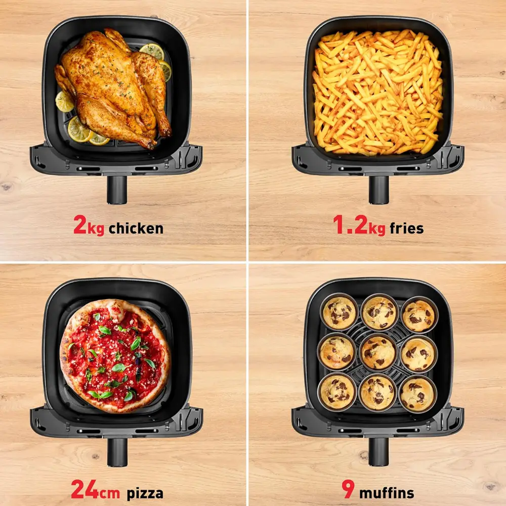 8 برنامه پخت ,امکان تنظیم زمان و دمای پخت بصورت دلخواه ,پایه محکم برای نگهداری بیشتر دستگاه ,تا ۳۷ درصد زمان پخت کوتاه تر نسبت به سایر سرخ کن های موجود در بازار ,دارای تایمر قابل تنظیم تا ۶۰ دقیقه ,سیستم کنترل دیجیتال مجهز به نمایشگر لمسی ,صفحه نمایشگر دیجیتال ,ظرف متحرک و قابل شستوشو ,قابلیت تنظیم میزان دما ,قابلیت شستشوی قطعات در ماشین ظرفشویی |