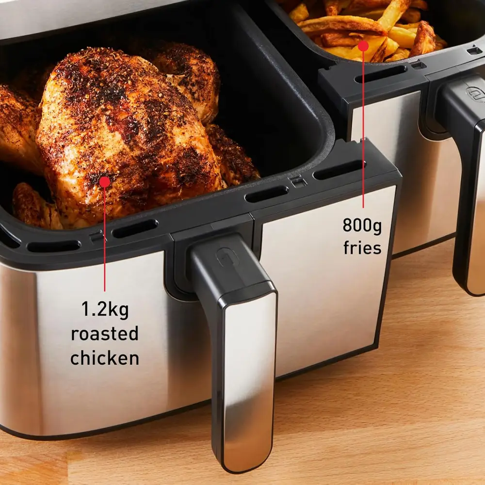 40 درصد سریعتر از فر ,8 برنامه پخت ,امکان پخت جداگانه با دو دما و دو زمان جداگانه ,امکان تنظیم زمان و دمای پخت بصورت دلخواه ,دارای دو کشو در 2 سایز مختلف ,سیستم کنترل دیجیتال مجهز به نمایشگر لمسی ,صفحه نمایشگر دیجیتال ,قابلیت شستشوی قطعات در ماشین ظرفشویی |